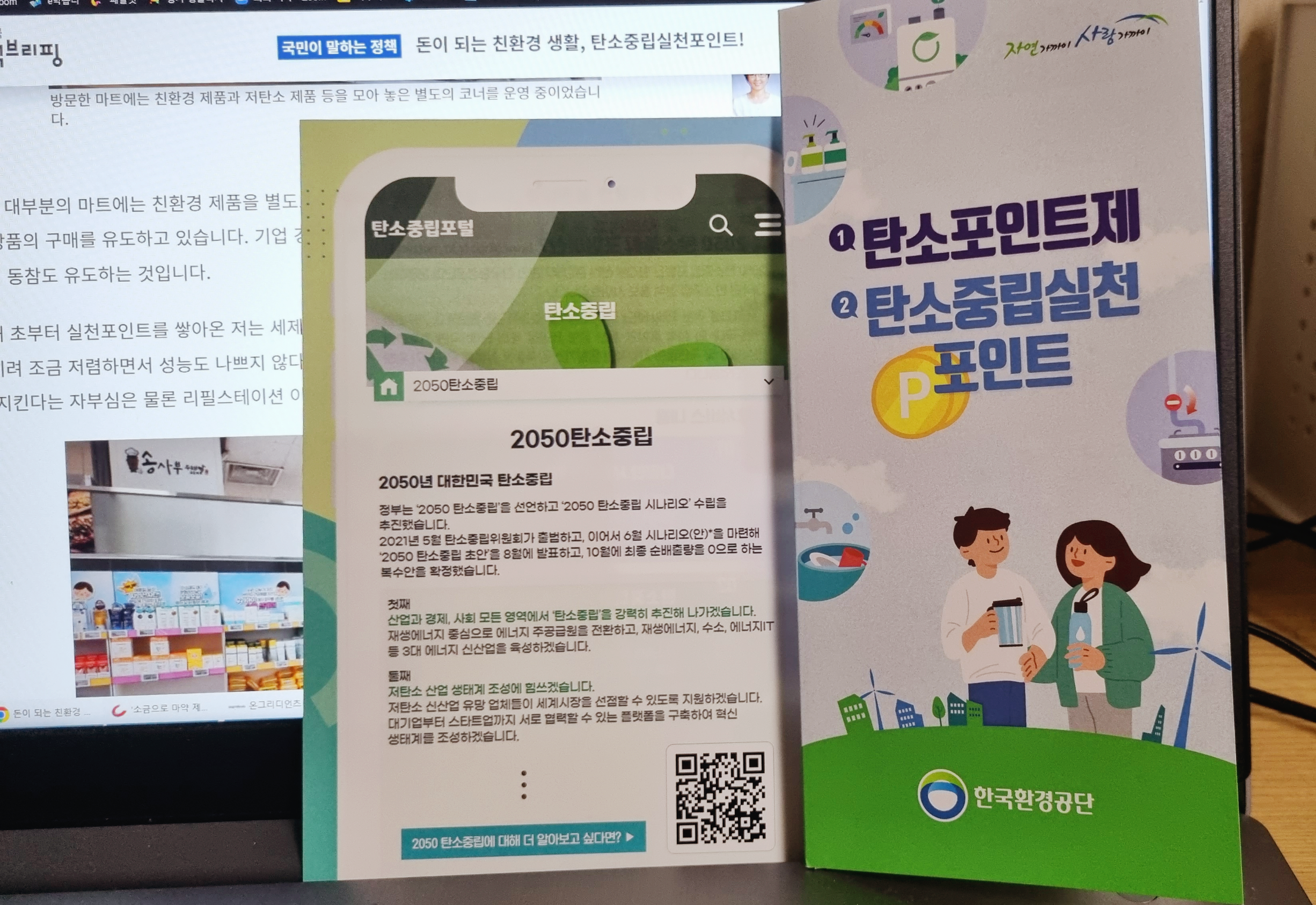 송도 컨벤시아에서 열리는 2022 환경 산업 & 탄소중립 컨퍼런스 및 전시회를 관람하다 보니 개인의 실천을 독려하기 위해 한국환경공단 부스에서 탄소포인트제와 탄소중립실천 포인트를 홍보하고 있었습니다. 탄소포인트제도는 오래전부터 알고 있었으나 탄소중립실천 포인트는 꽤나 생소했습니다. 작년 말부터 시행되었으며 올해 초부터 본격적으로 시행된 제도더라구요. 이 제도는 개인의 '실천'에 포인트를 둔 제도 입니다. 일상생활 속에서 탄소중립 생활을 실천하면 경제적 혜택=포인트를 주는 제도입니다.
